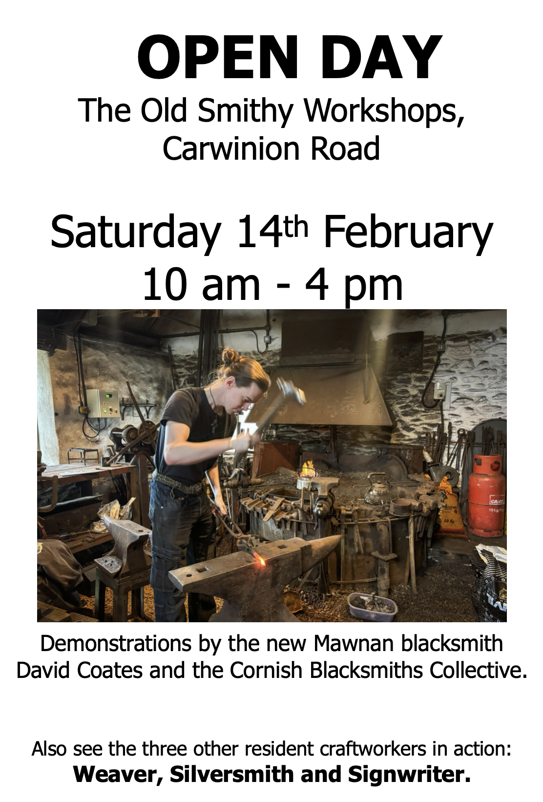 In January we welcomed the newest member of The Old Smithy Workshops, David Coates, who has officially taken on the residency of village blacksmith at the historic forge in Mawnan Smith.